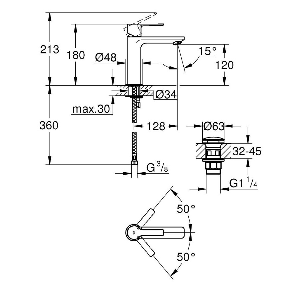 GROHE LINEARE bateria umywalkowa stojąca z korkiem chrom