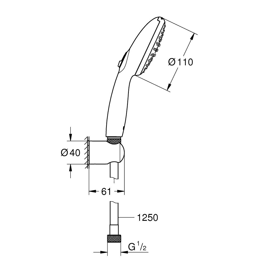 Dane techniczne: - wąż prysznicowy: 1250 mm - przyłącze: G 1/2