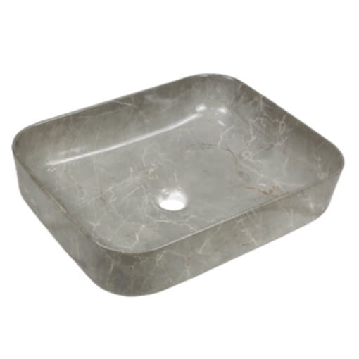 Główne cechy: - kolor: marmur szary połysk - materiał: ceramika sanitarna - montaż: nablatowa - kształt: prostokątna - brak przelewu