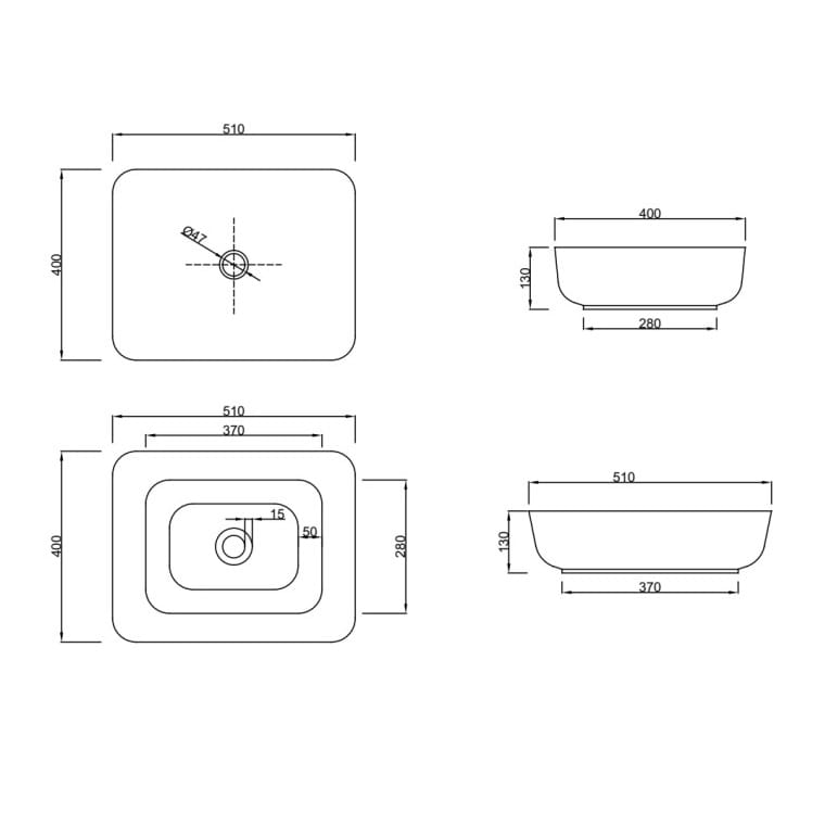 Dane techniczne: - długość: 510 mm - szerokość: 400 mm - wysokość: 130 mm