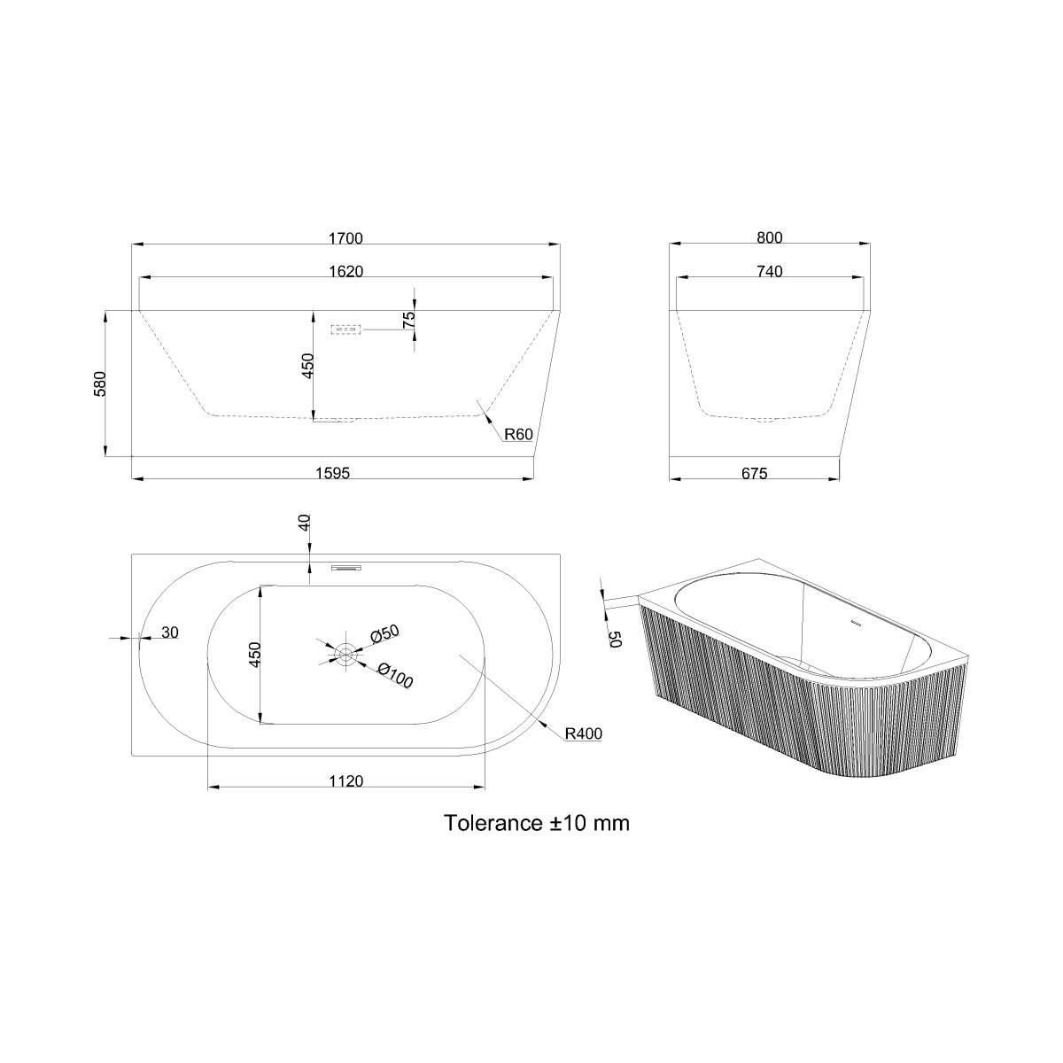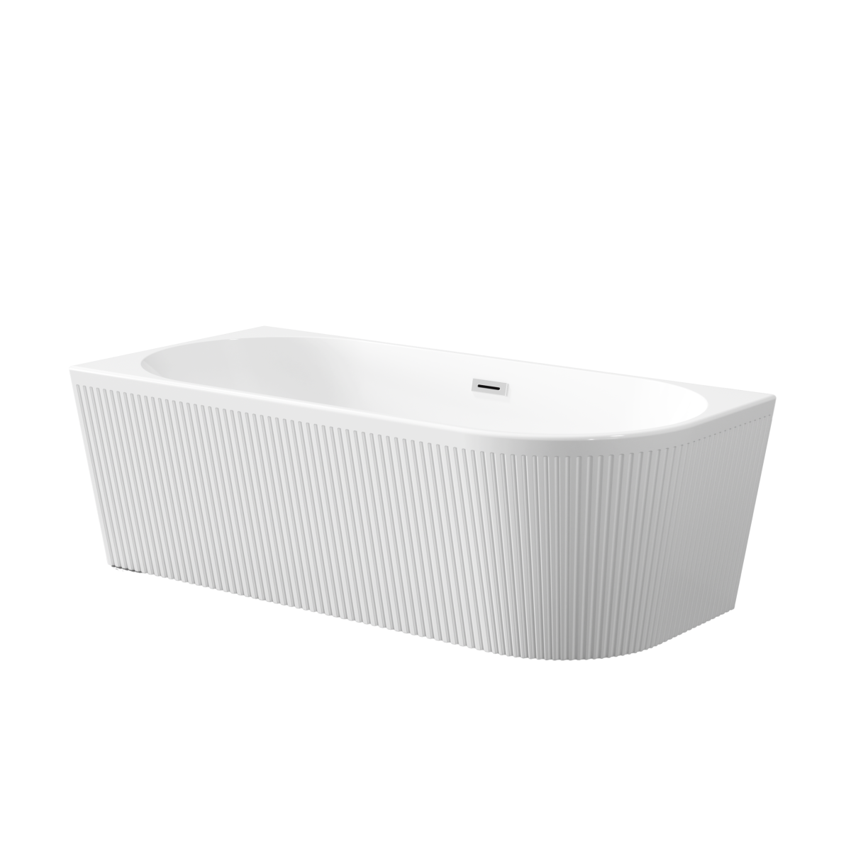 INVENA GLAMOUR wanna wolnostojąca przyścienna lewa 170x80 cm, biała ryflowana