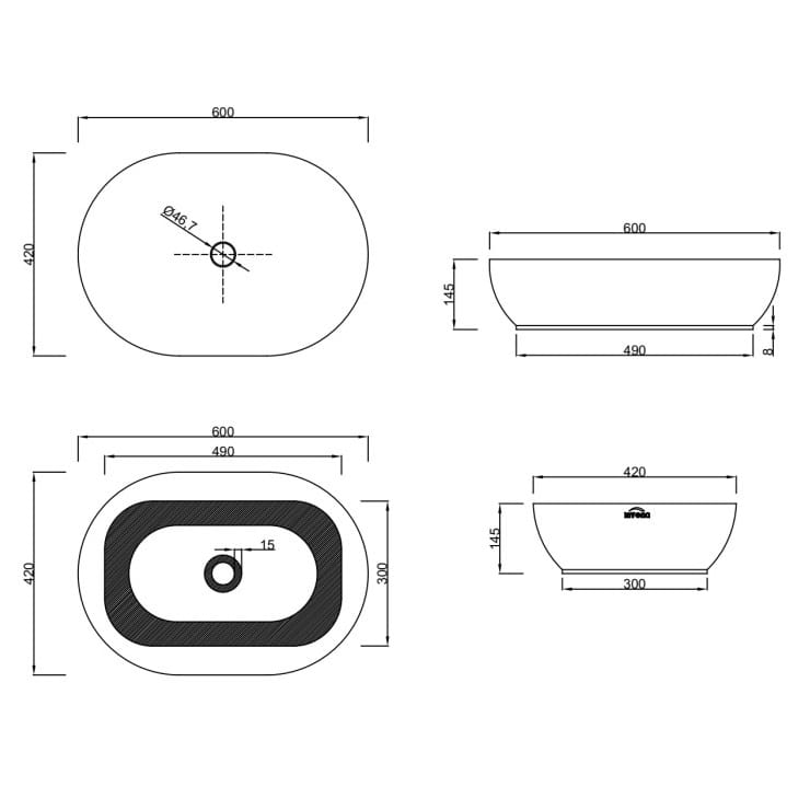 Dane techniczne: - długość: 600 mm - szerokość: 420 mm - wysokość: 145 mm