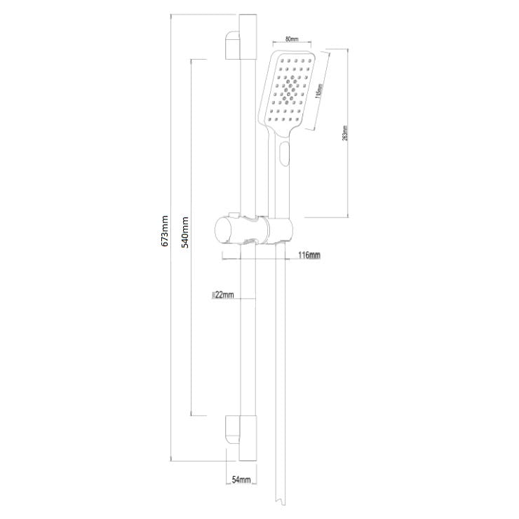 W zestawie znajduję się rączka natrysku, wąż oraz drążek.