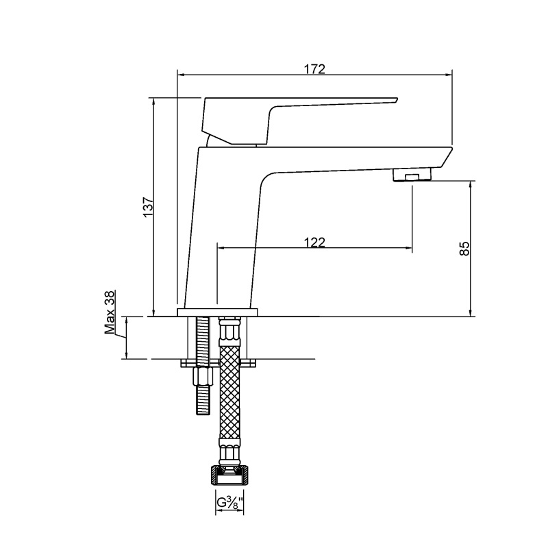 W zestawie znajdują się wężyki przyłączeniowe, korek klik-klak oraz zestaw montażowy.