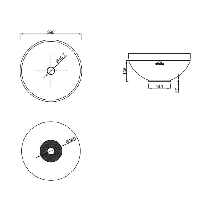 Dane techniczne: - długość: 395 mm - szerokość: 395 mm - wysokość: 135 mm