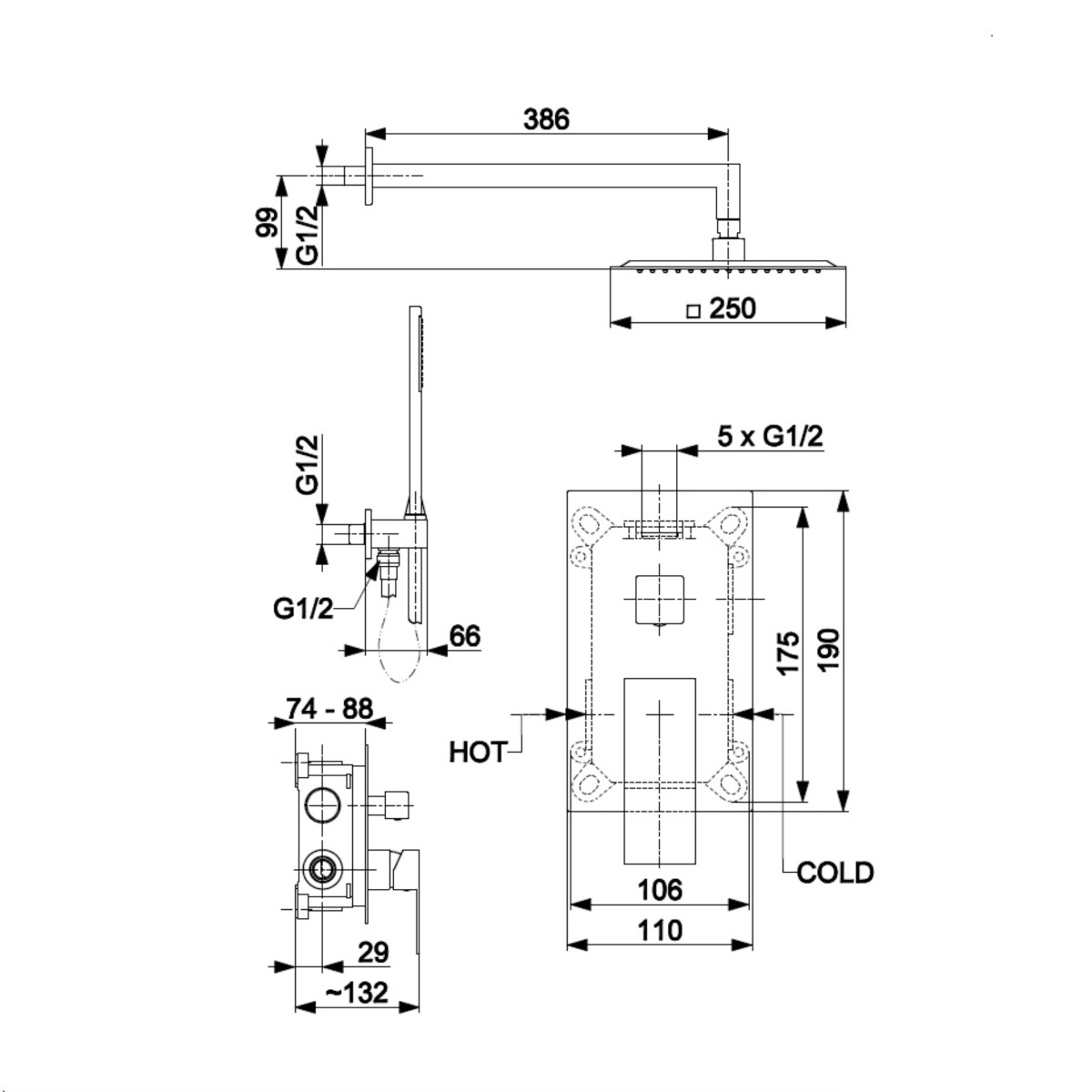 KFA LOGON zestaw prysznicowy z baterią i deszczownicą podtynkowy miedź szczotkowana