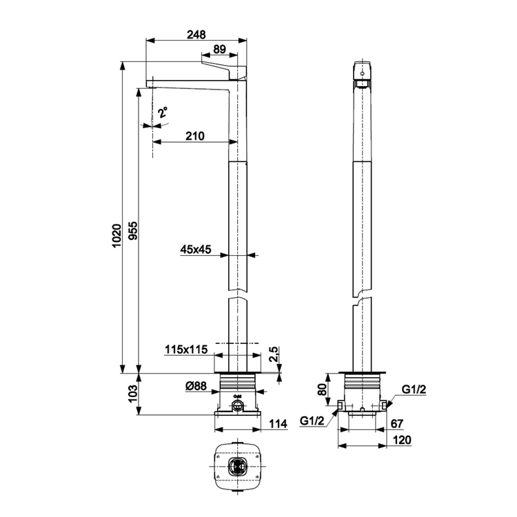 Opakowanie zawiera: bateria umywalkowa wolnostojąca, kompletny zespół przyłączeniowy z boxem podłogowym