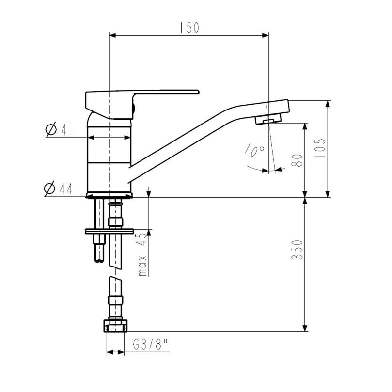 Dane techniczne: - przepływ wody: 12 l/min - zasięg wylewki: 150 mm - regulator ceramiczny: ⌀35 - temperatura wody maks.: 90 stopni C
