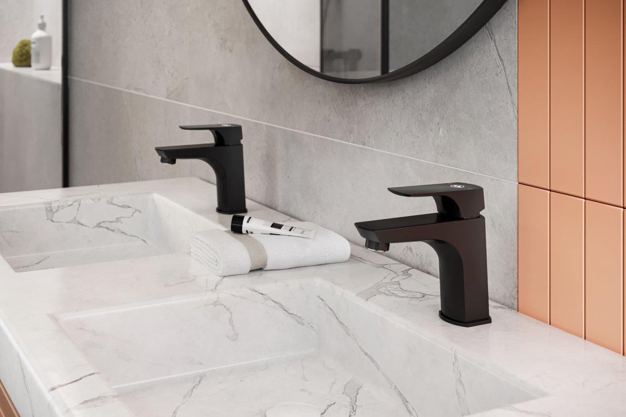 Główne cechy: - kolor: czarny - rodzaj: umywalkowa - typ: jednouchwytowa - montaż: stojąca - rodzaj wylewki: stała - napowietrzacz strumienia wody typu rubber clean