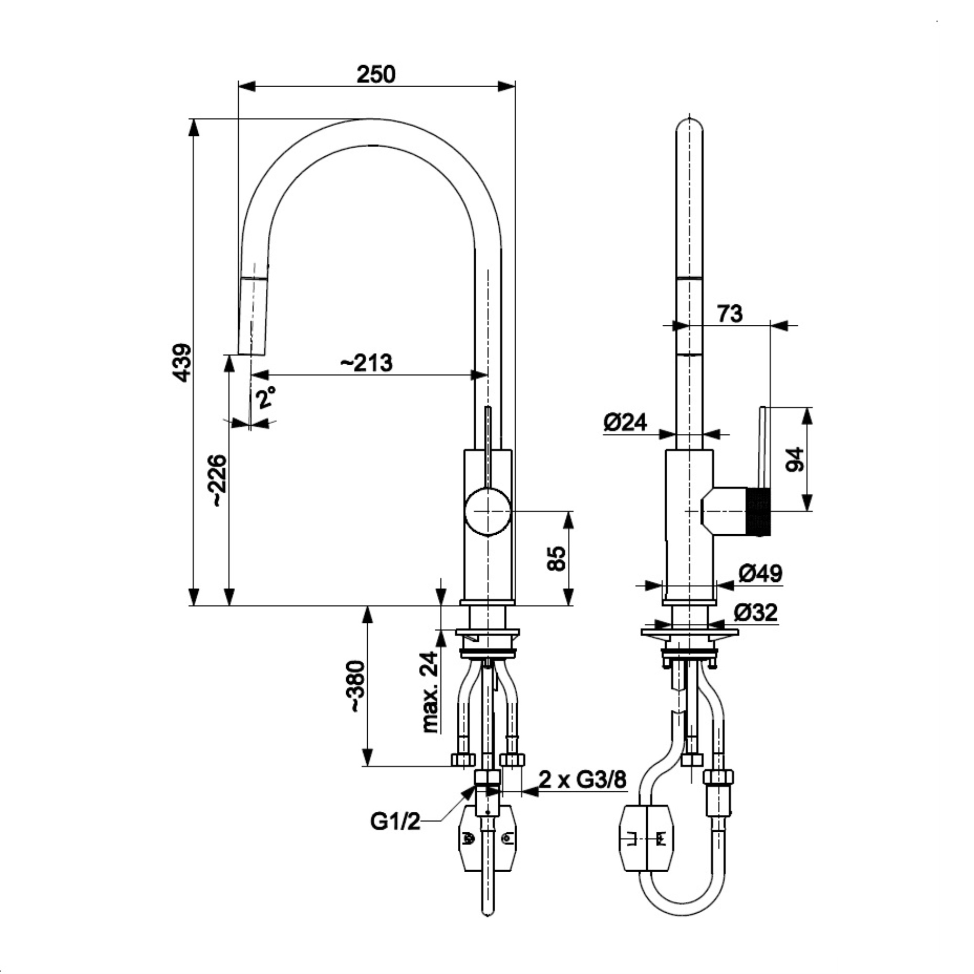 KFA MOZA 316L bateria kuchenna stojąca z wyciąganą wylewką stal nierdzewna