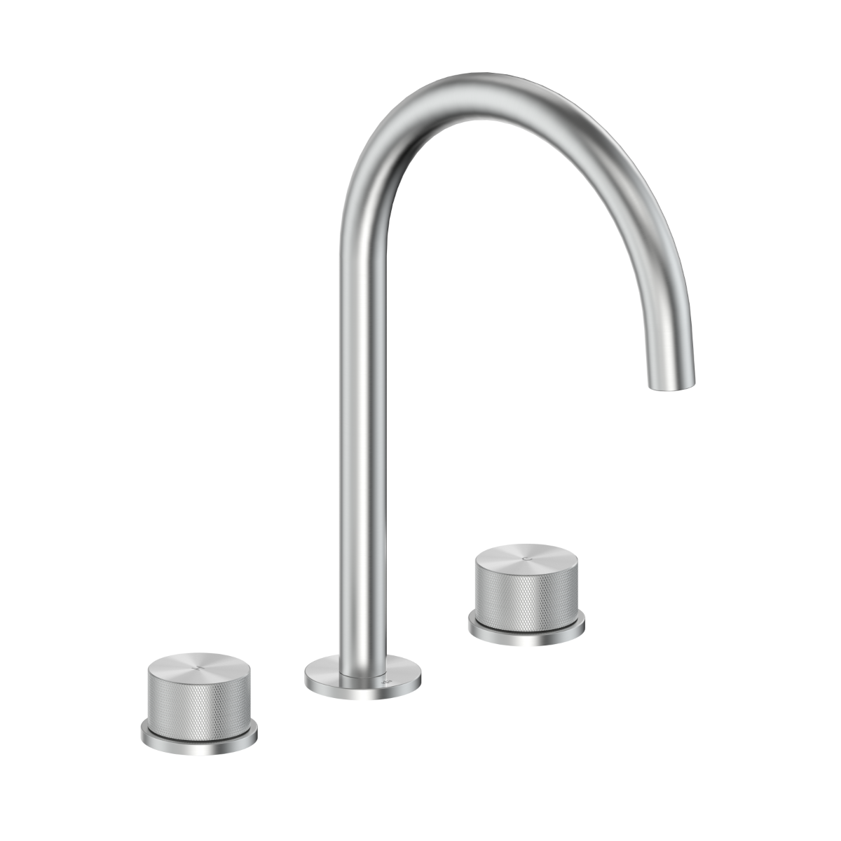 Główne cechy: - kolor: stal nierdzewna - rodzaj: umywalkowa - typ: dwuuchwytowa - montaż: stojąca 3-otworowa - rodzaj wylewki: stała - element sterujący: 2 x głowice G1/2x90° - napowietrzacz: M18.5*x1