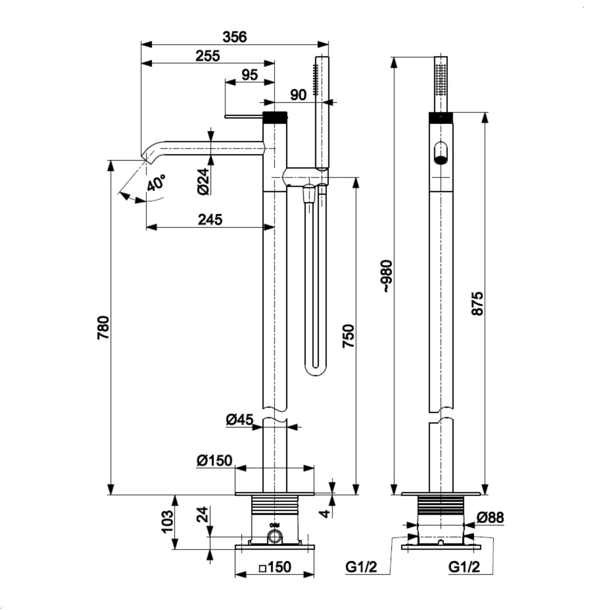 KFA MOZA 316L bateria wannowo-prysznicowa wolnostojąca stal nierdzewna