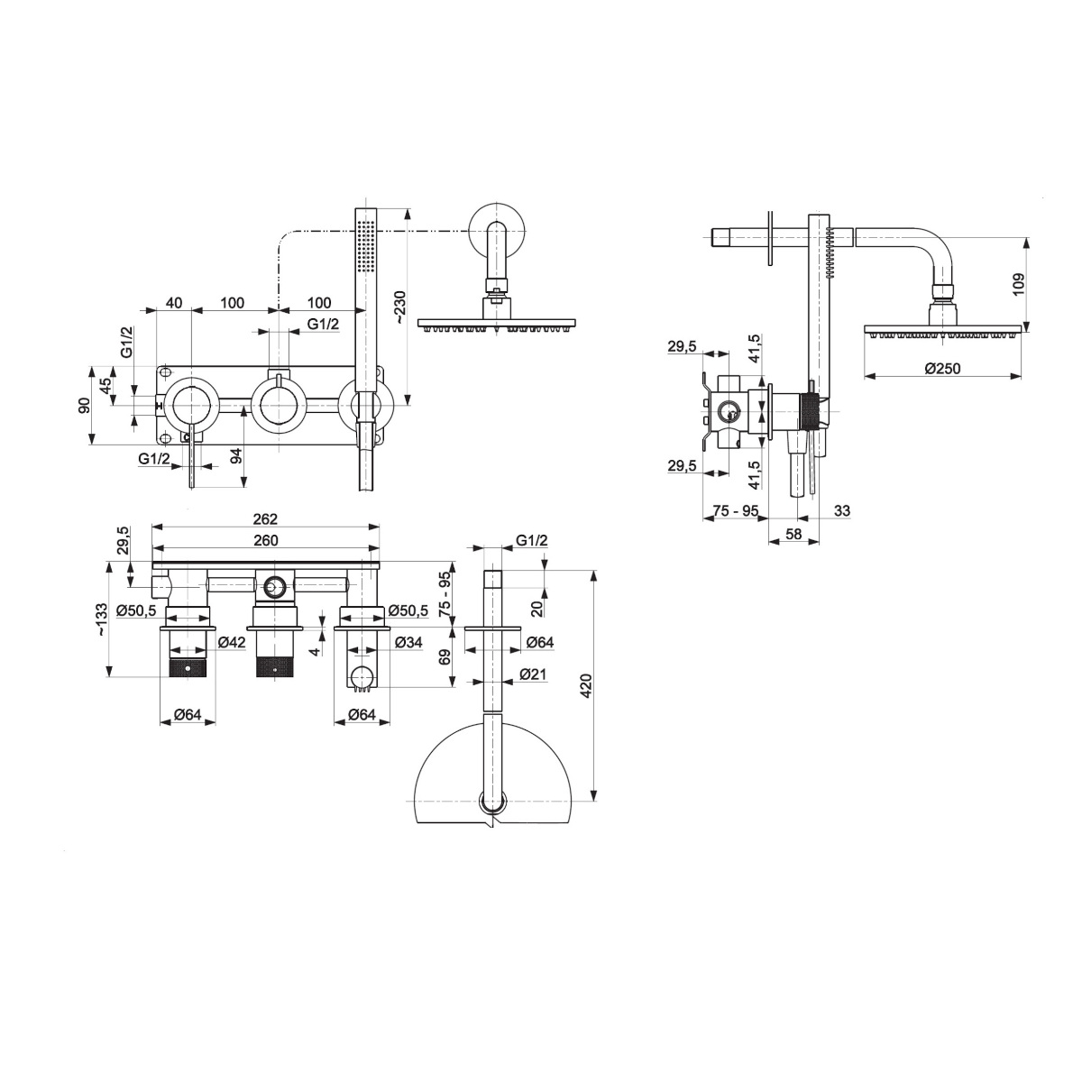 Zestaw zawiera: bateria z listwą podtynkową, ramię, dysk oraz rączka natrysku, przyłącze ścienne podtynkowe kątowe, waż. instrukcja montażu i obsługi baterii z gwarancją
