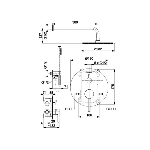 KFA MOZA ROSE GOLD zestaw natryskowy z deszczownicą, miedź szczotkowana