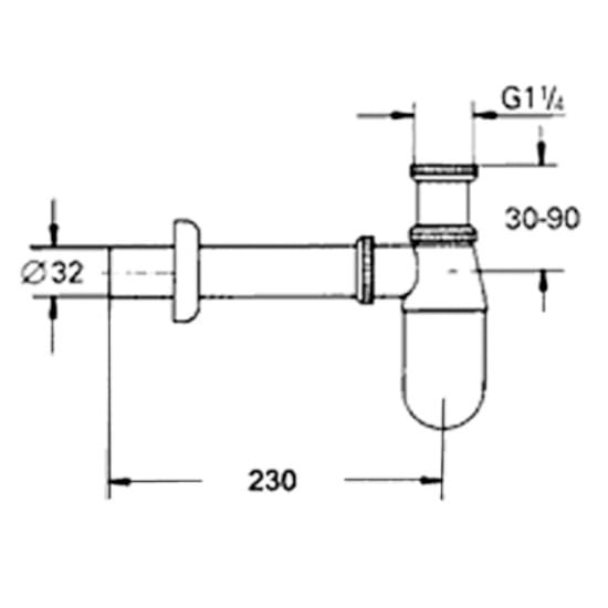 Dane techniczne: - średnica rury odpływu: 32 mm - długość odpływu: 230 mm - przyłącze: G1 1/4”