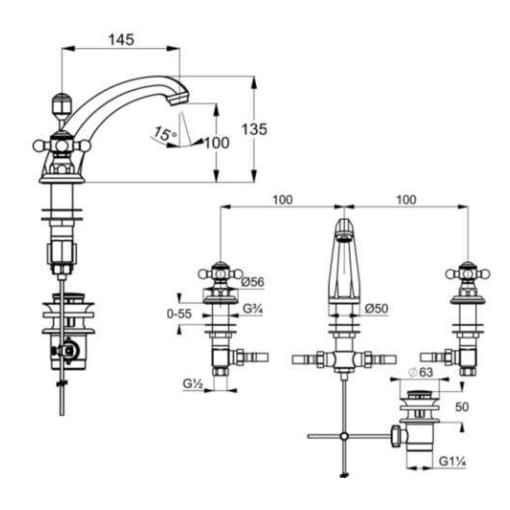 Główne cechy: - kolor: chrom - rodzaj: umywalkowa - typ: dwuuchwytowa - montaż: stojąca/ trzyotworowa - rodzaj wylewki: stała - głowice ceramiczne 180 - perlator kaskadowy - spust