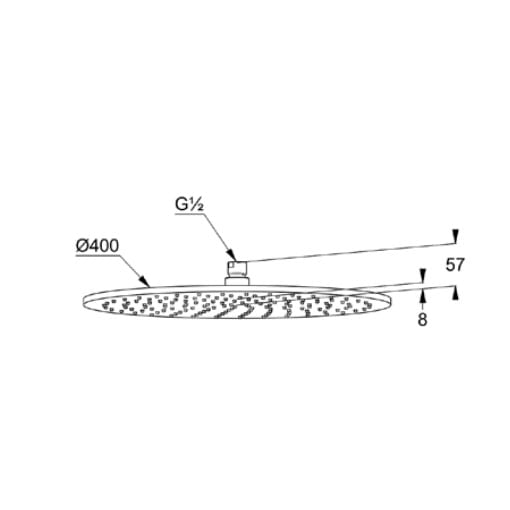 Dane techniczne: - średnica głowicy: 400 mm - gwint przyłącza: 1/2" - przepływ wody 23 l/min przy ciśnieniu 3 bar