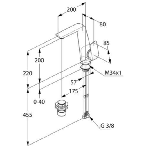 Dane techniczne: - zestaw odpływowy 1 1/4" - perlator s-pointer Eco PCA M 24 x 1 - przepływ wody 6 l/min - elastyczne wężyki ciśnieniowe G 3/8 - zasięg wylewki: 200 mm
