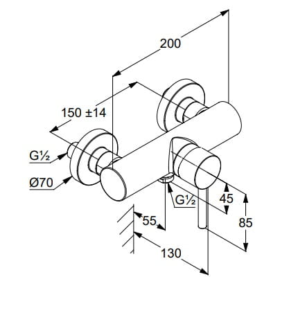 Dane techniczne: - przepływ wody 28 l/min przy ciśnieniu 3 bar - odprowadzenie natrysku G 1/2 - przyłącza mimośrodowe G 1/2 x G 3/4