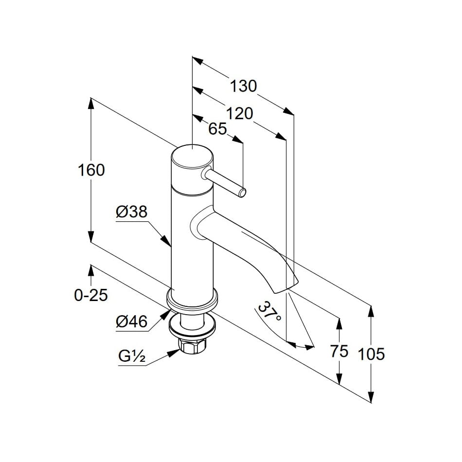 Dane techniczne: - wysokość: 160 mm - długość: 130 mm - zasięg wylewki: 120 mm - przyłącze: G 1/2