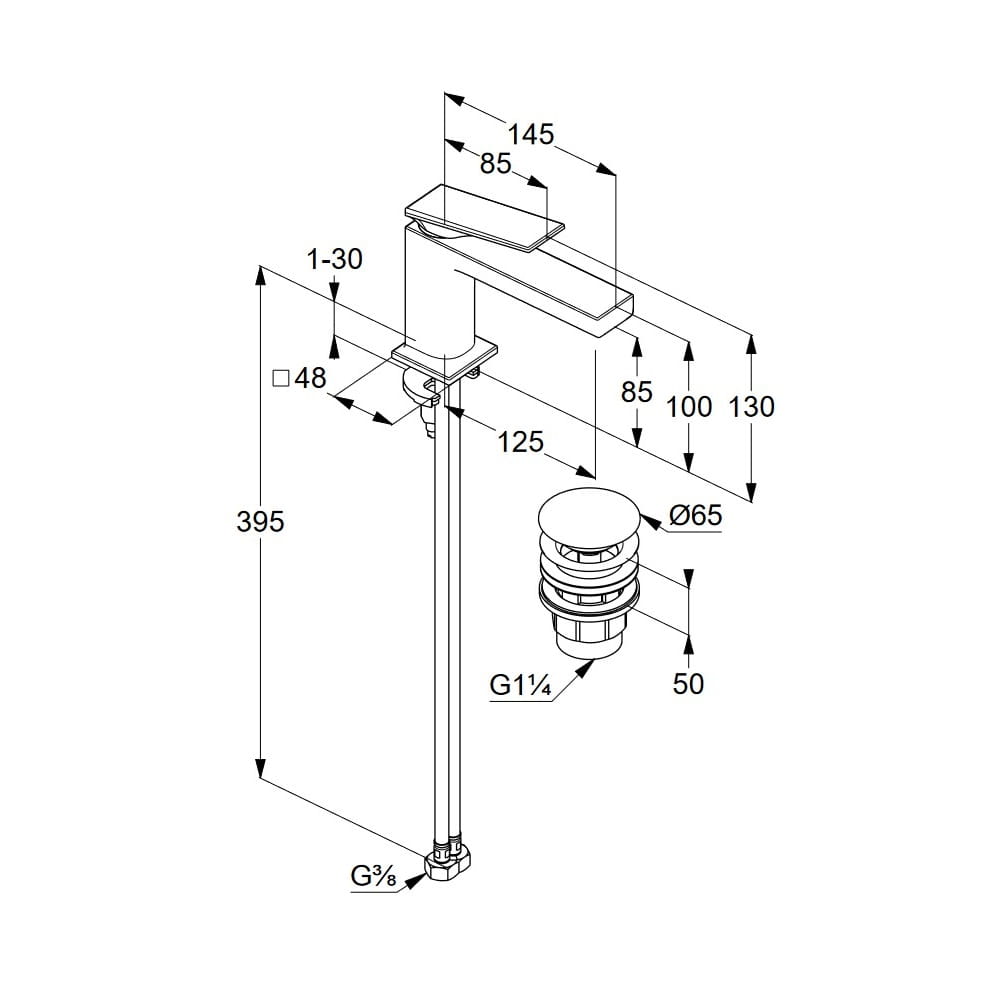 Dane techniczne: - wysokość: 130 mm - zasięg wylewki: 125 mm - przyłącze: G 3/8