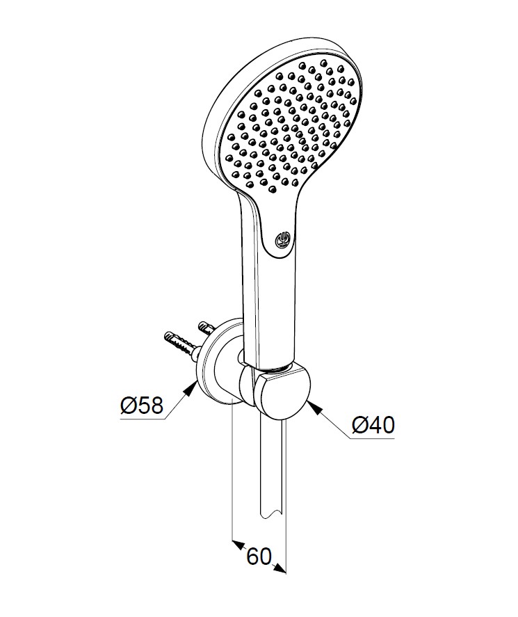 Dane techniczne: - Rączka natrysku: X 1S - Ilość strumieni w rączce: 1 - Przepływ wody: 15 l/min (przy ciśnieniu 3 bar) - System szybkiego usuwania kamienia wapiennego - Przyłącze gwintowane: G 1/2 - Sitko wychwytujące zanieczyszczenia - Wąż natryskowy: G 1/2 x G 1/2, długość 1250 mm, z osłoną z tworzywa sztucznego i nakrętkami stożkowymi - Uchwyt: Ścienny uchwyt natryskowy