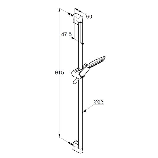 Dane techniczne: - wąż natryskowy KLUDI SUPARAFLEX obustronnie odporny na skręcanie G 1/2 x G 1/2 x 1600 mm - przepływ wody 23 l/min przy ciśnieniu 3 bar - wysokość drążka: 915 mm