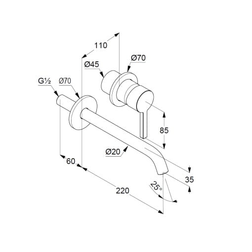 Dane techniczne: - zasięg wylewki: 220 mm - przepływ wody 4,5 l/min przy ciśnieniu 3 bar - perlator s-pointer Caché M 18,5 x 1