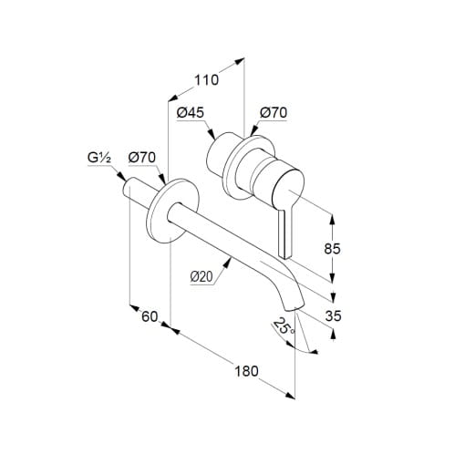 Dane techniczne: - zasięg wylewki: 180 mm - przepływ wody 4,5 l/min przy ciśnieniu 3 bar - perlator s-pointer Caché M 18,5 x 1