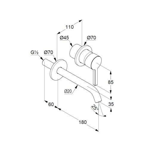 Dane techniczne: - zasięg wylewki: 180 mm - przepływ wody 4,5 l/min przy ciśnieniu 3 bar - perlator s-pointer Caché M 18,5 x 1