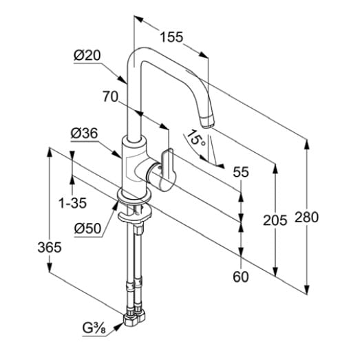Bateria zawiera wbudowany perlator, który znajduje się na końcu wylewki, wprowadza powietrze w strumień wody, co powoduje wrażenie jego większej objętości. Pomaga podnieść ciśnienie w instalacji i stworzyć pozory mocniejszego strumienia przy faktycznie mniejszym zużyciu wody.