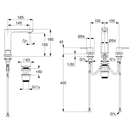 Dane techniczne: - perlator s-pointer Eco PCA M 24 x 1 - przepływ wody 6 l/min przy ciśnieniu 3 bar - elastyczne wężyki ciśnieniowe G 3/8 - zasięg wylewki: 145 mm