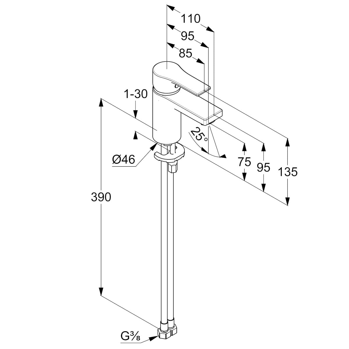 Dane techniczne: - zasięg wylewki: 95 mm - wysokość baterii: 135 mm - wysokość do perlatora: 75 mm