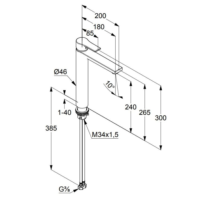 Dane techniczne: - zasięg wylewki: 180 mm - wysokość baterii: 300 mm - wysokość do perlatora: 240 mm