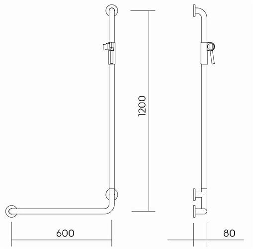 Dane techniczne: - długość poręczy: 60x120 cm - średnica rurki: 32 mm - mocowanie przy pomocy rozet 71 mm, z otworami dla 3 śrub mocujących