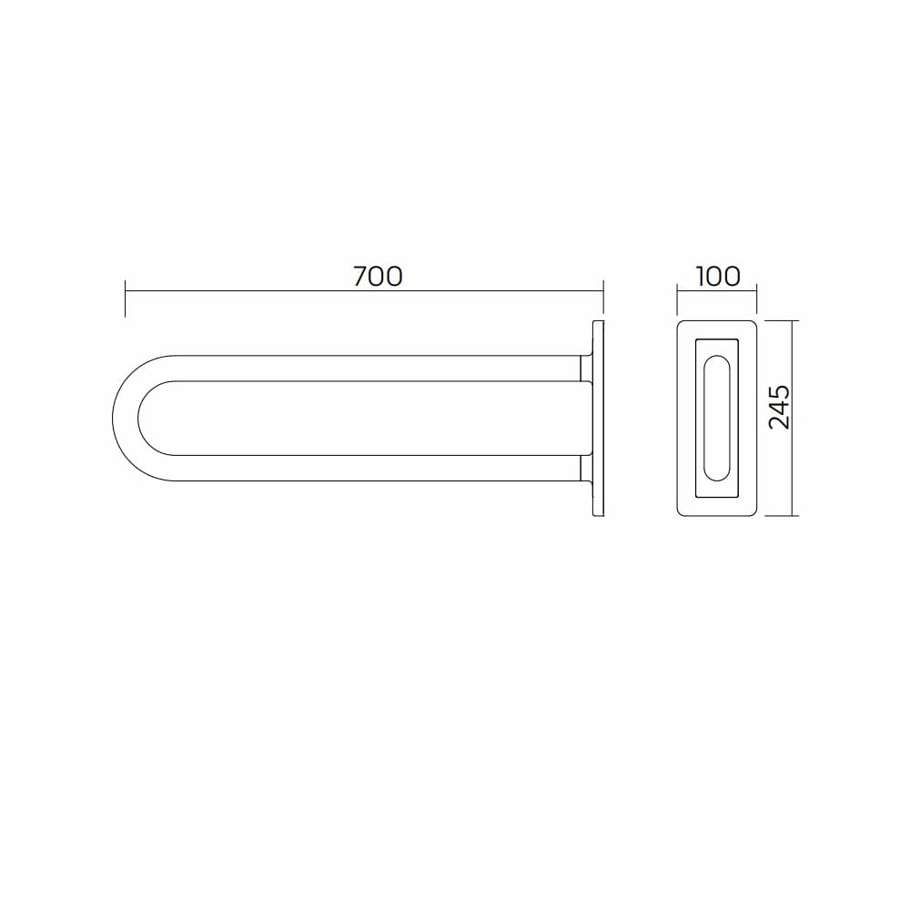 Dane techniczne: - długość poręczy: 700 mm - średnica rurki: 32 mm - mocowana na płytce 100 x 245 x 13,5 mm w kolorze antracytowym RAL7043 z otworami dla 6 śrub montażowych