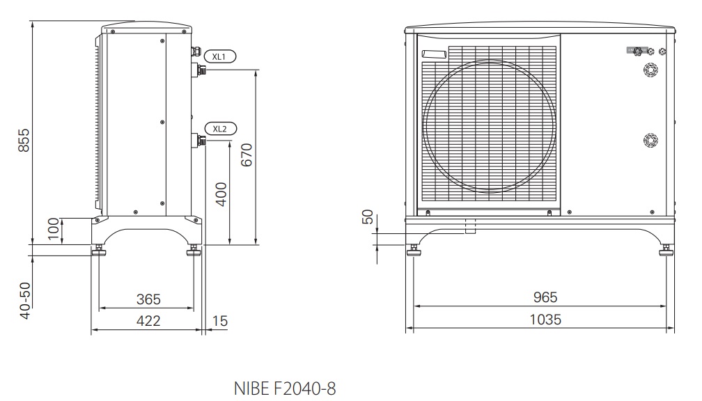 NIBE ZESTAW F2040 pompa ciepła typu monoblok jednostka zewnętrzna o modulowanej mocy grzewczej do 8 kW + centrala wewnętrzna VVM 225R