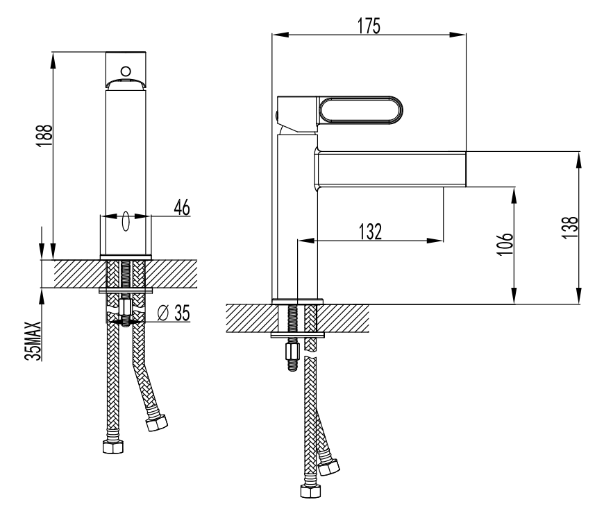 W komplecie z baterią znajduje się spust click clack, zestaw przyłączeniowy oraz wężyki przyłączeniowe.