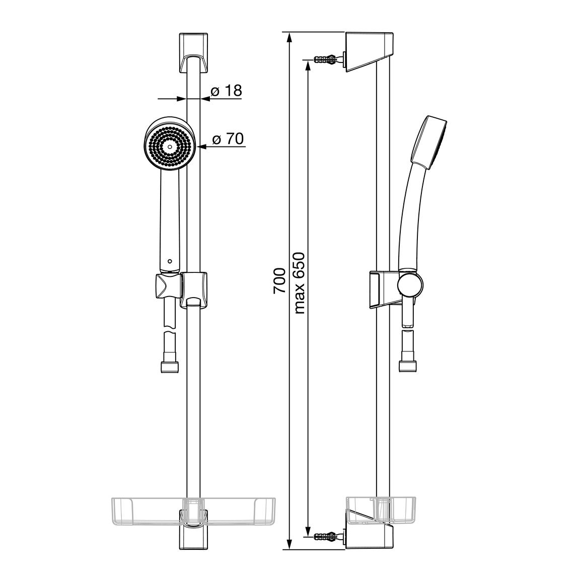 Dane techniczne: - drążek natrysku: 650 mm - wąż natrysku: 1500 mm - natężenie przepływu przy 300 kPa: 0.11 l/s
