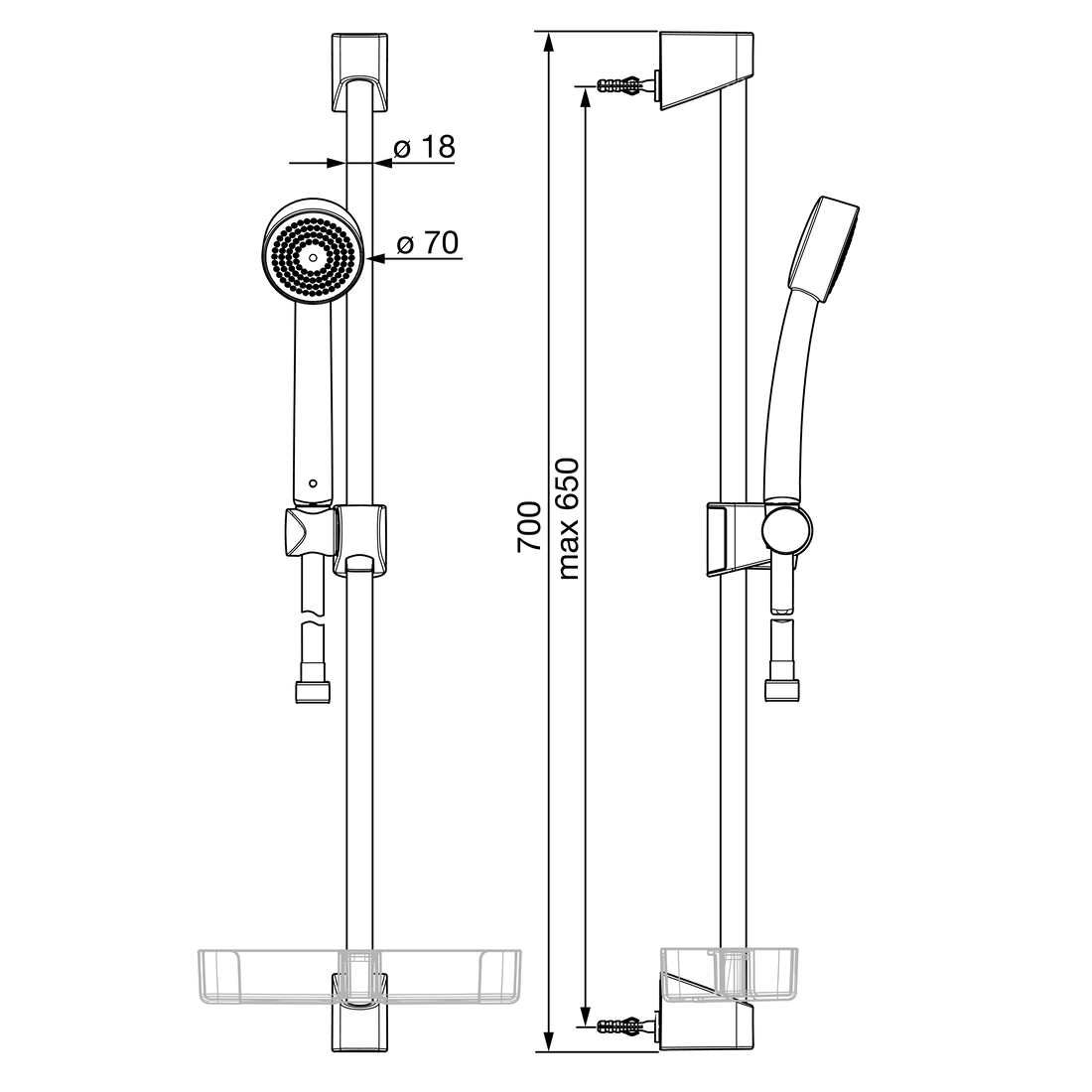Dane techniczne: - drążek natrysku: 650 mm - wąż natrysku: 1500 mm