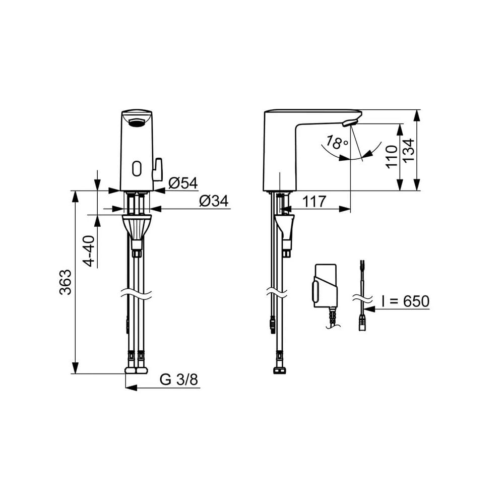 Dane techniczne: - wysokość bateri: 134 mm - zasięg wylewki: 117 mm - przyłącze: G 3/8
