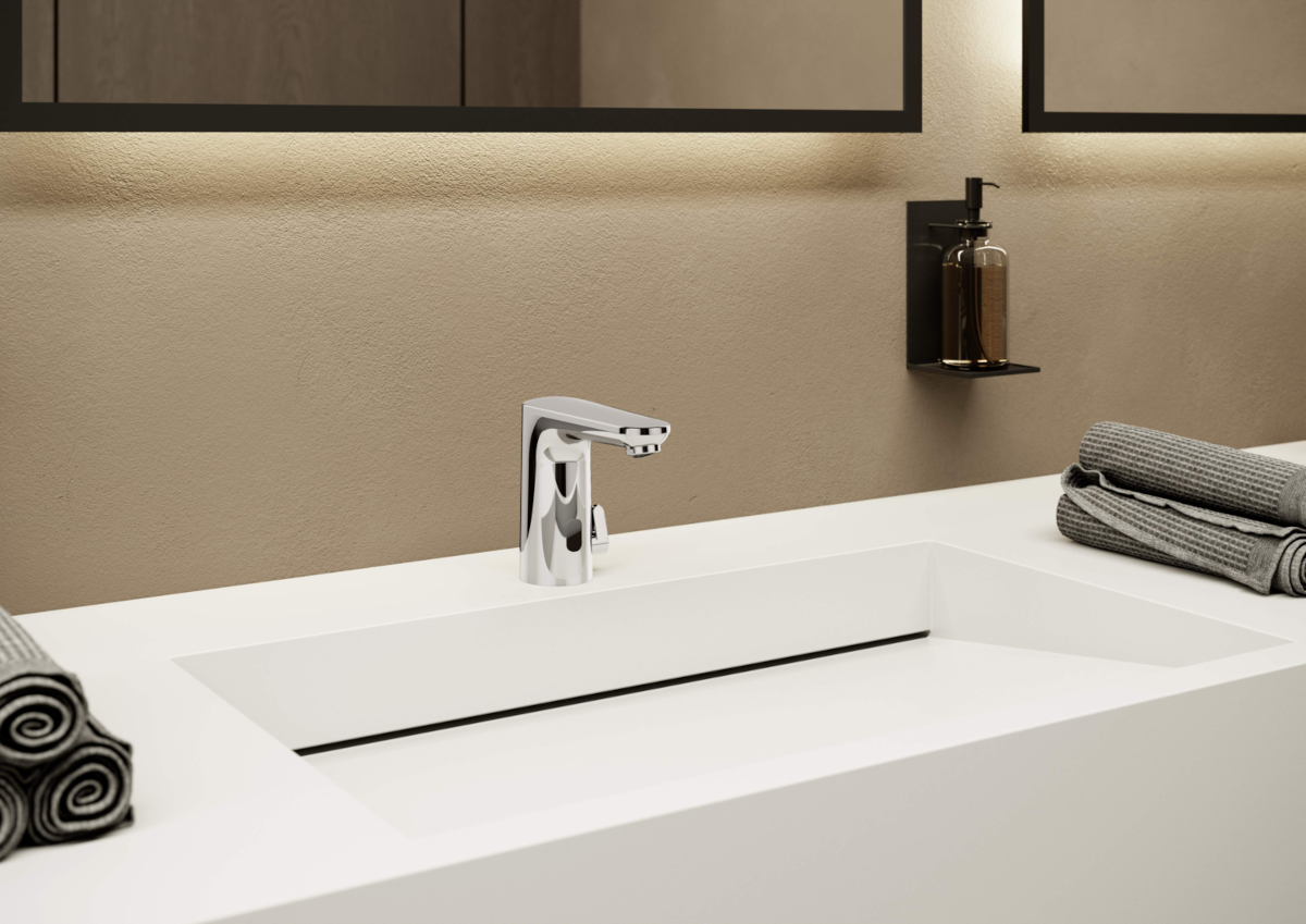 Główne cechy: - kolor: chrom - rodzaj: umywalkowa - typ: bezdotykowa - montaż: stojąca - rodzaj wylewki: stała - perlator PCA® - stałe natężenie przepływu niezależnie od zmian ciśnienia - regulowany kąt wypływu wody - uchwyt regulacji temperatury - regulowany ogranicznik ciepłej wody - zmiana ustawień (przez bluetooth) - sygnalizacja świetlna