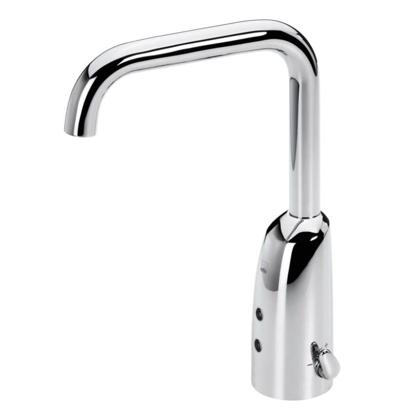 Główne cechy: - kolor: chrom - rodzaj: umywalkowa - typ: bezdotykowa - montaż: stojąca - rodzaj wylewki: stała - uchwyt regulujący temperaturę