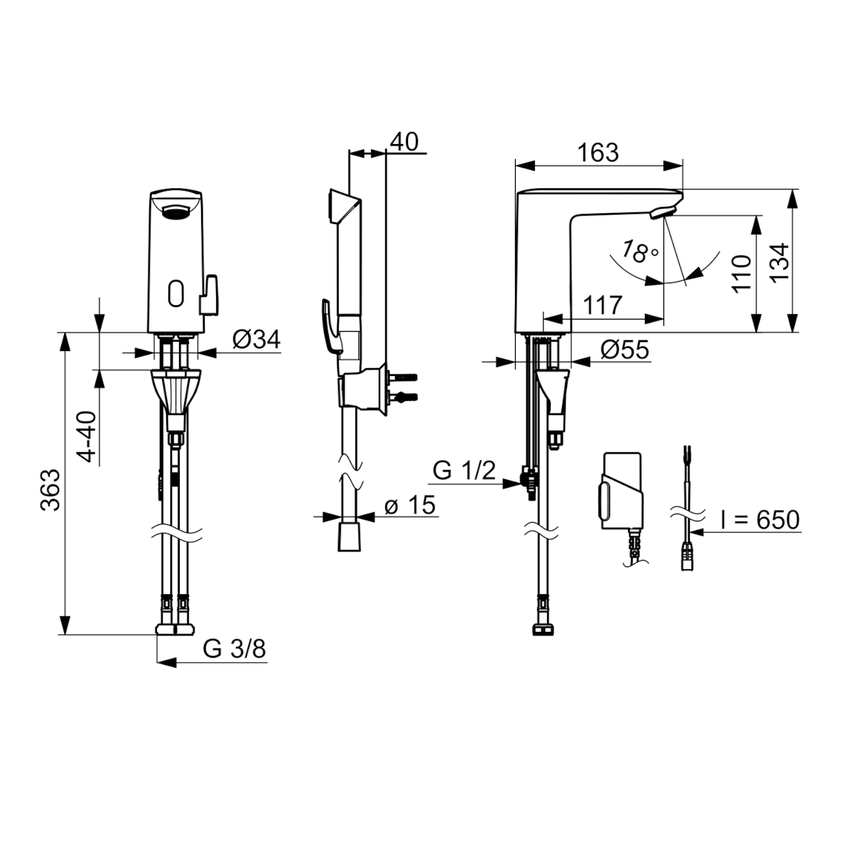 Dane techniczne: - wysokość baterii: 134 mm - zasięg wylewki: 117 mm - długość węża: 1500 mm - przyłącze: G 3/8