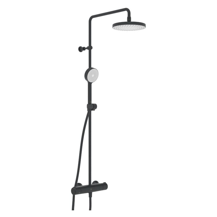 Główne cechy: - kolor: czarny matowy - montaż: naścienny - rodzaj baterii: natryskowa, termostatyczna - typ: dwuuchwytowa - 1-strumieniowa rączka natrysku: intensywny - orzeźwiający strumień wody - system zapobiegający osadzaniu się kamienia - ramię deszczownicy może być skracane - zmienne punkty mocowania - zabezpieczenie przed poparzeniem 38° C - obudowa minimalizująca przewodzenie ciepła