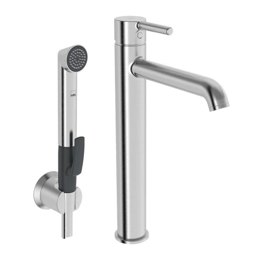 ORAS OPTIMA STYLE bateria umywalkowa stojąca z rączką Bidetta, stal szczotkowana