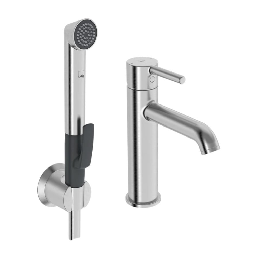ORAS OPTIMA STYLE bateria umywalkowa stojąca z rączką Bidetta, stal szczotkowana