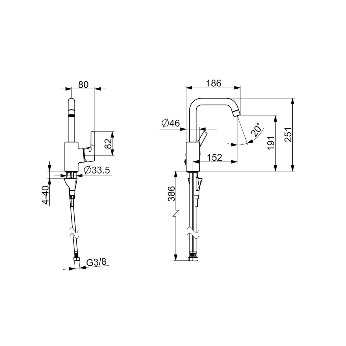 Dane techniczne: - głowica ceramiczna: 35 mm - zasięg wylewki: 152 mm - wysokość baterii: 251 mm - szerokość baterii: 186 mm - natężenie przepływu przy 300 kPa: 0.1 l/s