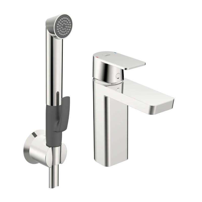 Główne cechy: - kolor: chrom - rodzaj: umywalkowa - typ: jednouchwytowa - montaż: stojąca - rodzaj wylewki: stała - rączka natrysku typu Bidetta - uchwyt natrysku - aerator