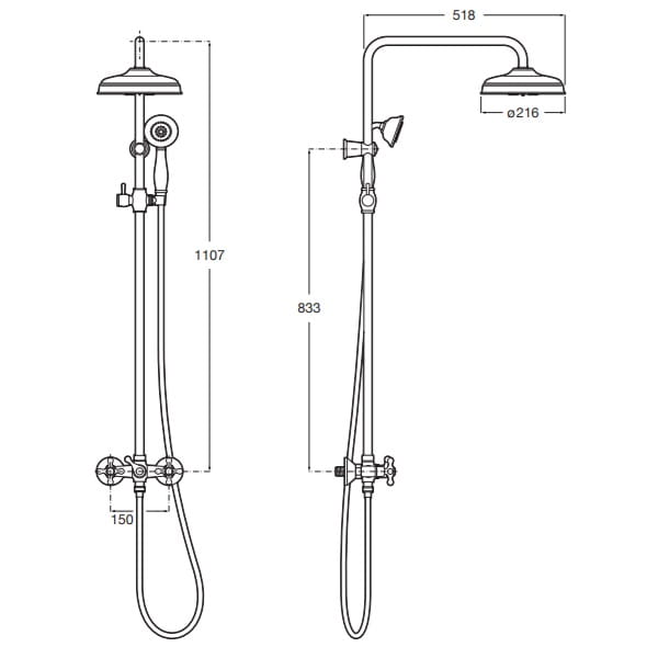 Dane techniczne: - długość węża natryskowego: 1500 mm - średnica deszczownicy: 216 mm - średnica przyłącza: G 1/2"